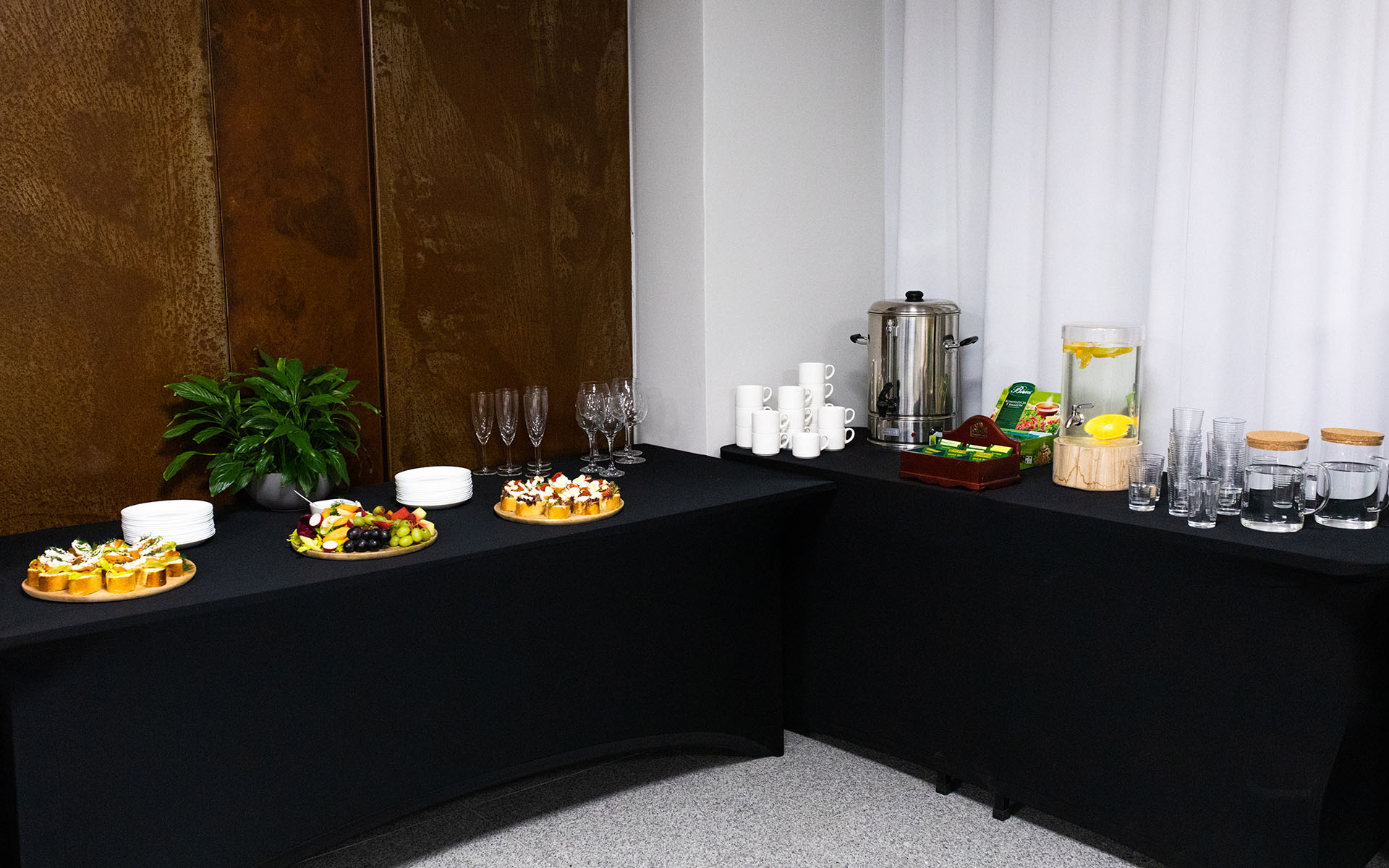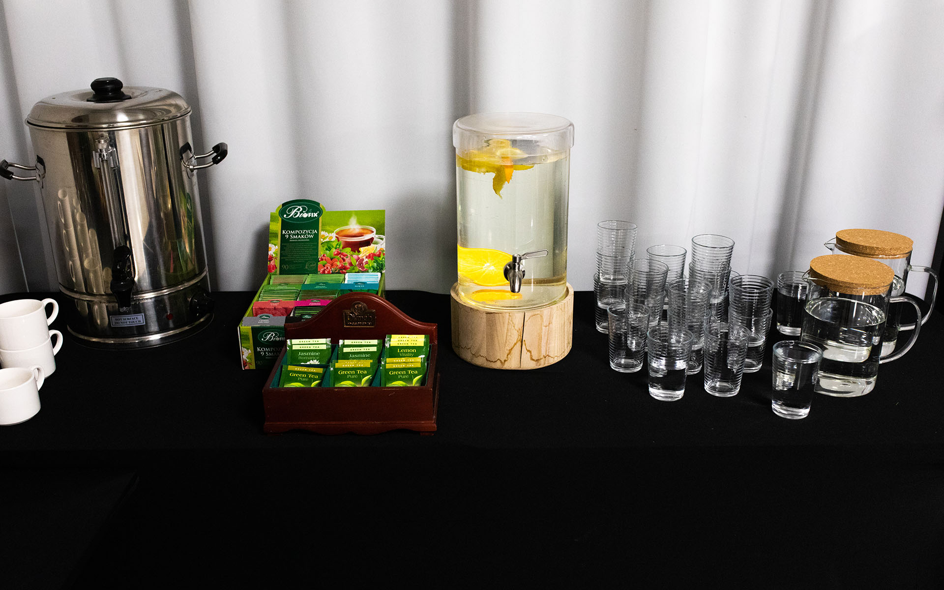 Istnieje możliwość wynajęcia sali z cateringiem, lub możliwość skorzystania z zewnętrznej obsługi gastronomicznej.